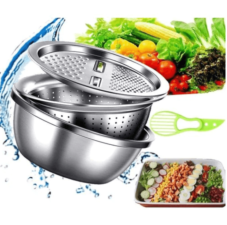 Blir du trött av att laga mat i köket och har mindre tid att göra andra saker? Nu kan du spara tid och energi med den multifunktionella grönsakshackaren i rostfritt stål med avrinningsbassäng. Det här redskapet hjälper dig att tvätta, dränera och riva dina matvaror på ett och samma ställe!