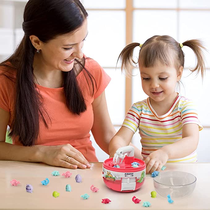 Känner du dig ledsen när du inte kan fånga något föremål från klösmaskinen i arkaden? Nu kan du spela detta klassiska spel i ditt hem, obegränsat med denna Dinosaur Mini Claw Machine! Den är superrolig och interaktiv!
