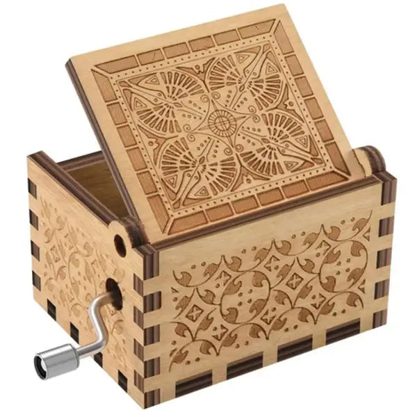 SPELDOSA MED HANDVEV: Inget batteri eller elektricitet behövs. Vrid bara på handtaget så börjar den spela melodin.
