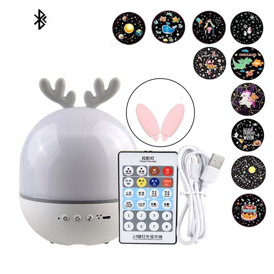 Har du eller dina barn svårt att slappna av och somna? Med det här magiska ljuset och den lugnande musiken kommer ni att sova på nolltid! Använd den som nattlampa eller för att projicera roterande bilder i taket för att skapa en romantisk och avkopplande atmosfär.