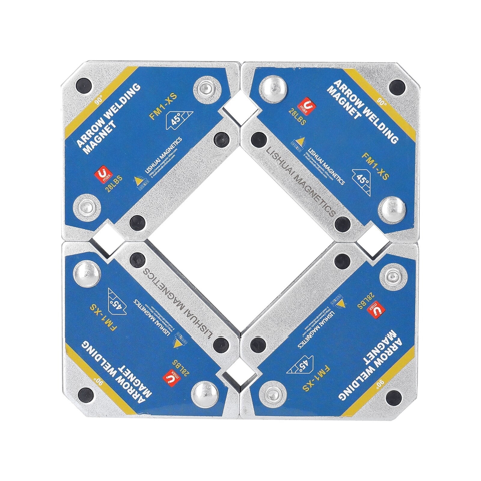 TRE VINKELAR: De kraftfulla magnetiska vinkelsvetsverktygen med pildesign stöder material i 45°, 90° och 135° för enkel åtkomst och gör det möjligt att arbeta med olika vinklar vid svetsning, montering och märkning.