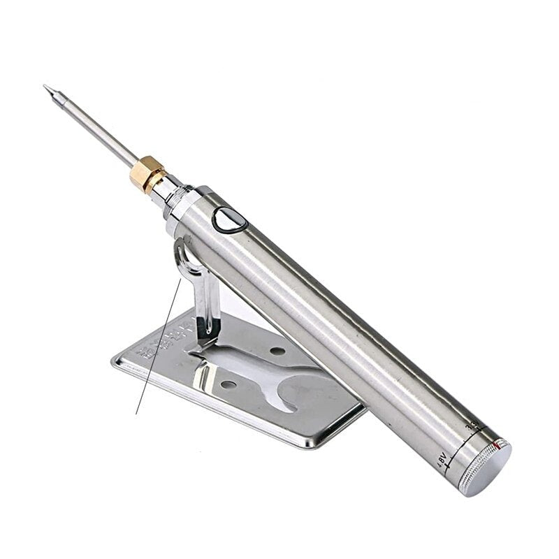 Ergonomisk design: En högpresterande sladdlös lödkolv som är utformad med en lätt och tunn ram för bra manövrerbarhet. Dess kropp är också lång för att säkerställa att du inte råkar röra vid den heta metallspetsen av misstag. Vilket gör den säker och bekväm att hålla för att hålla dina händer från brännskador och belastning även efter en riklig tid. Dessutom erbjuder lödkolven en praktisk spänningsknapp med tvåvägsjustering som sträcker sig från 3,3V till 4,8V. Ger dig en enkel och effektiv lödningsupplevelse.