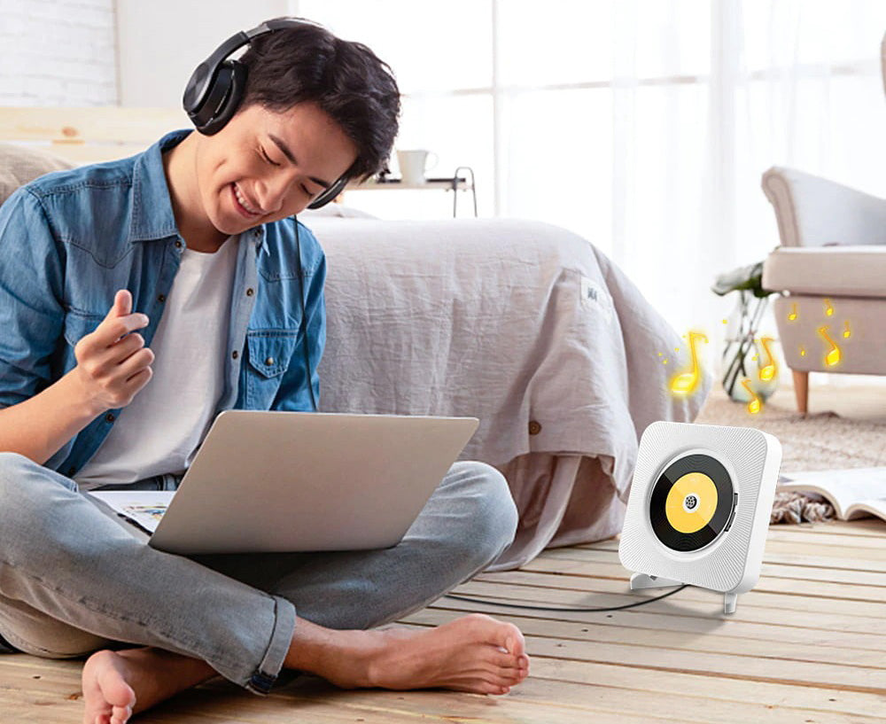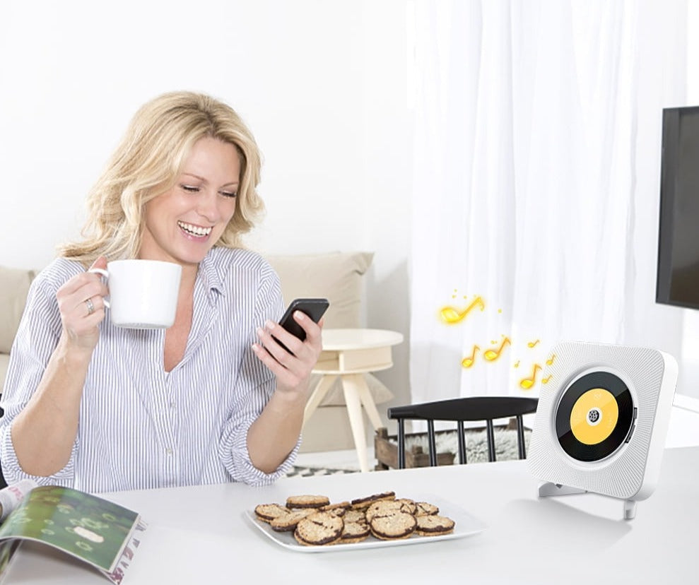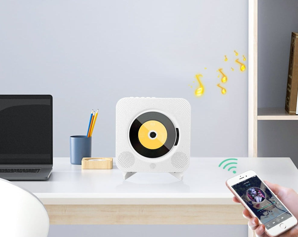 Den här lilla gadgeten kommer garanterat att förvåna gästerna och få folk att se dig spela musik från väggen. Den bärbara CD-spelaren är bärbar och unik och kan hängas upp på nästan vilken vägg som helst tack vare den strängdrivna dockningsstationen och gör att du kan byta ut ditt musikarrangemang så ofta du vi