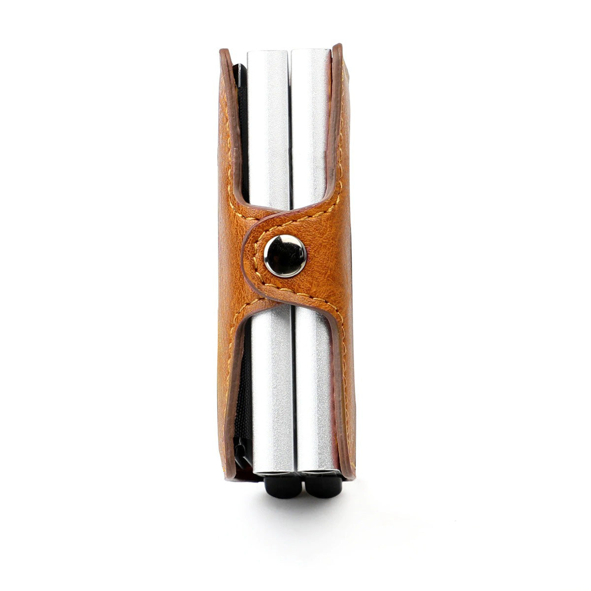 - 1 x RFID-Läderplånbok Med Dubbla Pop-Up-Fodral i Aluminium