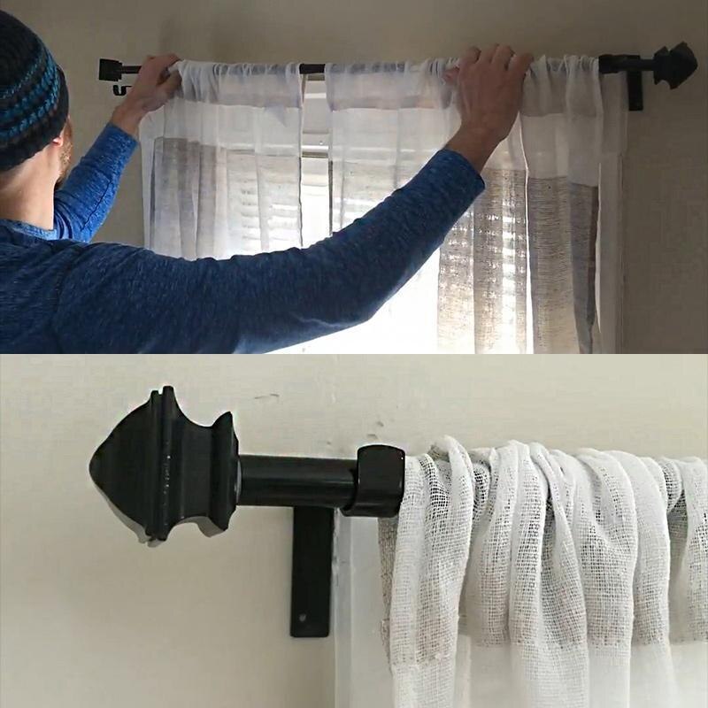 Den revolutionerande designen kan installeras på några sekunder! När du hänger upp nästa gardin kan gardinstångsfästet spara mycket tid och ansträngning. Det är lika enkelt att installera som en dragkedja, och det finns inga hål i väggen eller träet. Den här förenklade och patenterade designen ger den stabilitet, stil och installationsvänlighet som du vill använda i ditt hem. Det snabbaste, fastaste och enklaste sättet att hänga upp gardiner.