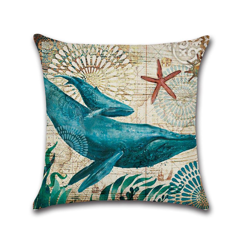 Vacker heminredning - Söta marinblå färgglada havsdjur som havssköldpadda, val, sjöhäst och bläckfiskmönster tryckta på kuddeöverdragen. Perfekt heminredning för vardagsrum, soffa, soffa, utebänk, loveseat, bil etc inomhus och utomhus.