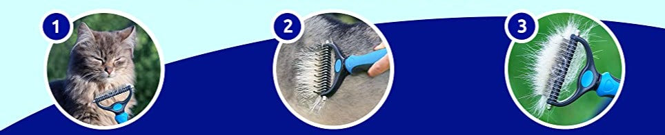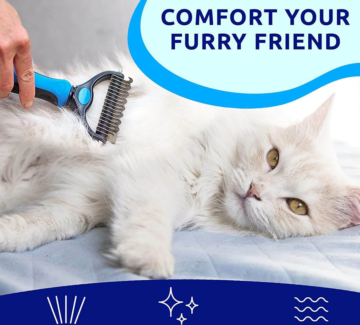 Försiktigt avmattande för ditt husdjur - Inga skrapor rundade yttertänder masserar försiktigt husdjurets hud, 9+17 bladtänder skär smidigt genom tillräckligt långa mattor, eliminerar trassel och knutar utan att skada ditt vackra husdjurs hud. Perfekt hundborste för underull. Starkt rekommenderade groomingverktyg säkerhet användning på vått eller torrt hår för husdjur med känslig hud, allergifri.
