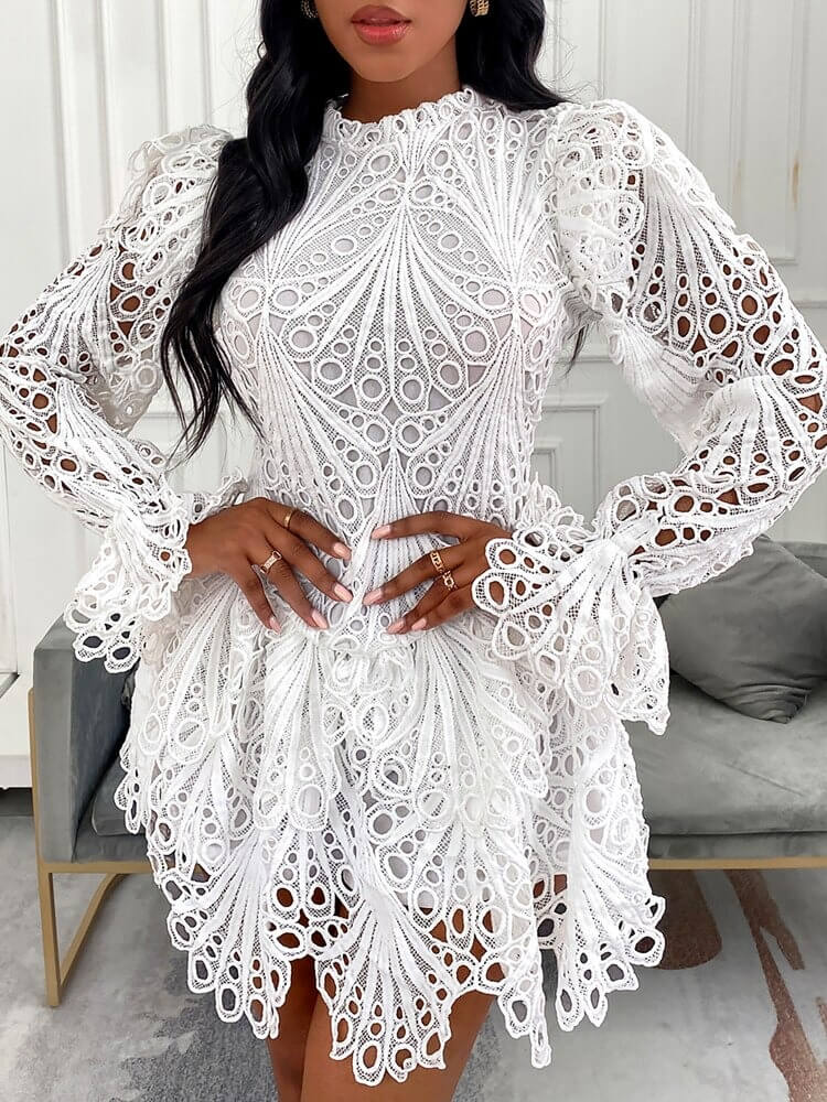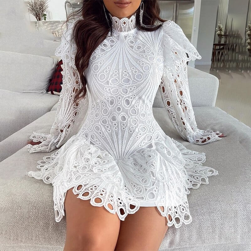 LÄTT ATT MATCHA: Den här snygga spetsminiklänningen är så lätt att matcha med klackar, platta sandaler och väskor. Du kommer att vara redo att gå ut med vänner eller njuta av en varm sommardag på stranden.