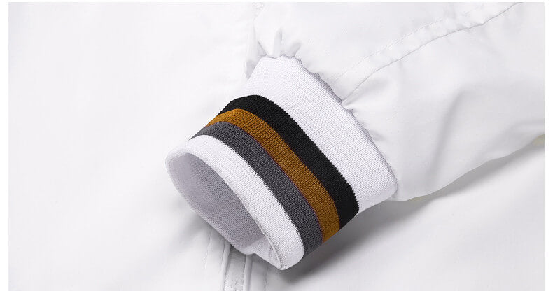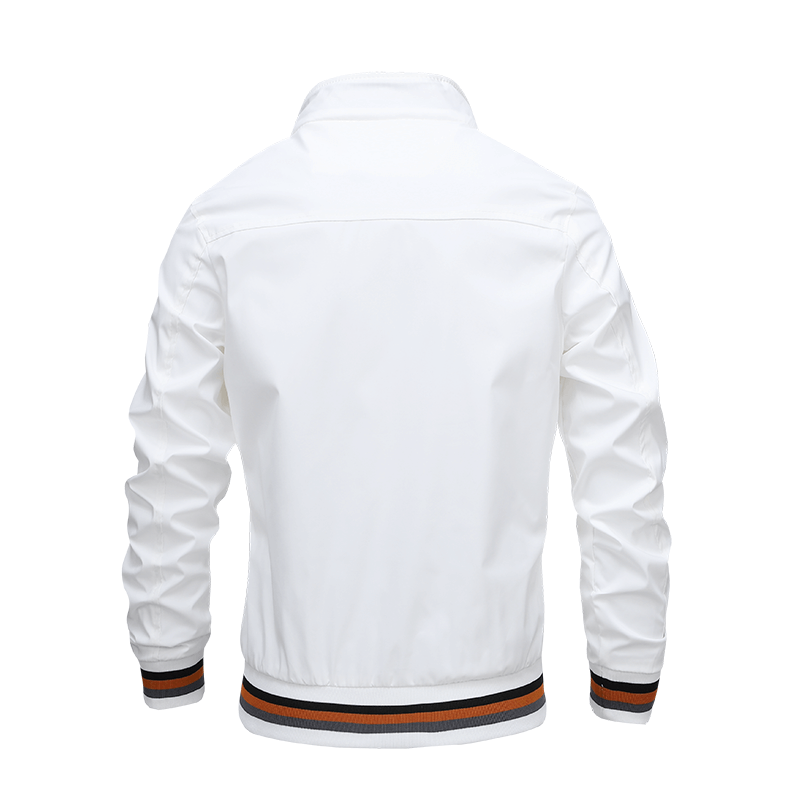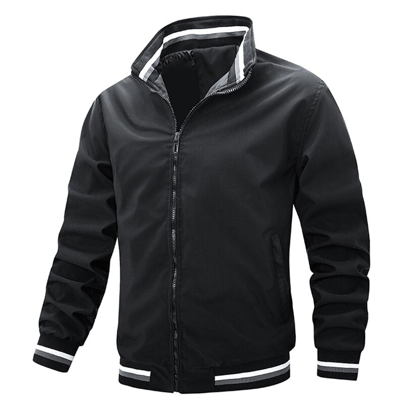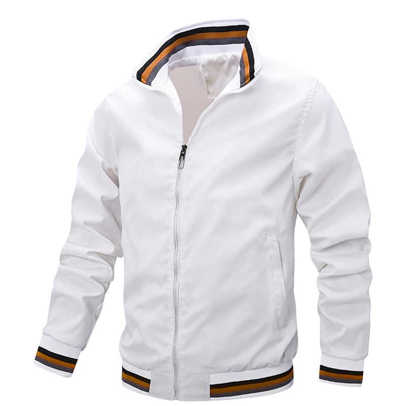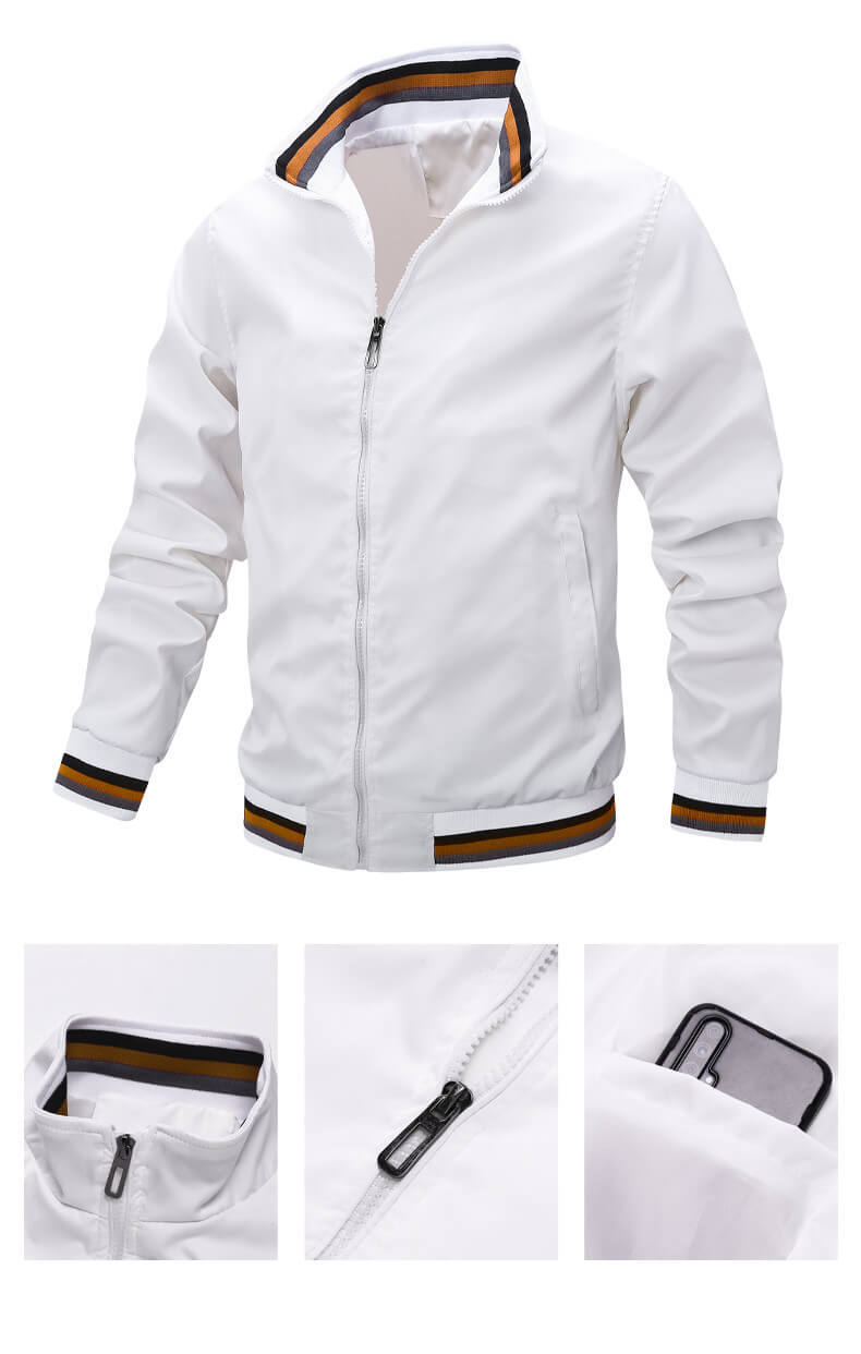 Visa din egen stil, unika charm och självförtroende med den här högkvalitativa vindtäta jackan.  Utformad med randiga elastiska ribbstickade ärmslut, fåll och krage för en skön passform som skyddar dig mot kyligt väder. Den här lätta jackan kommer att bli din favoritjacka för vardagsbruk som är mångsidig och passar till alla casual looks.