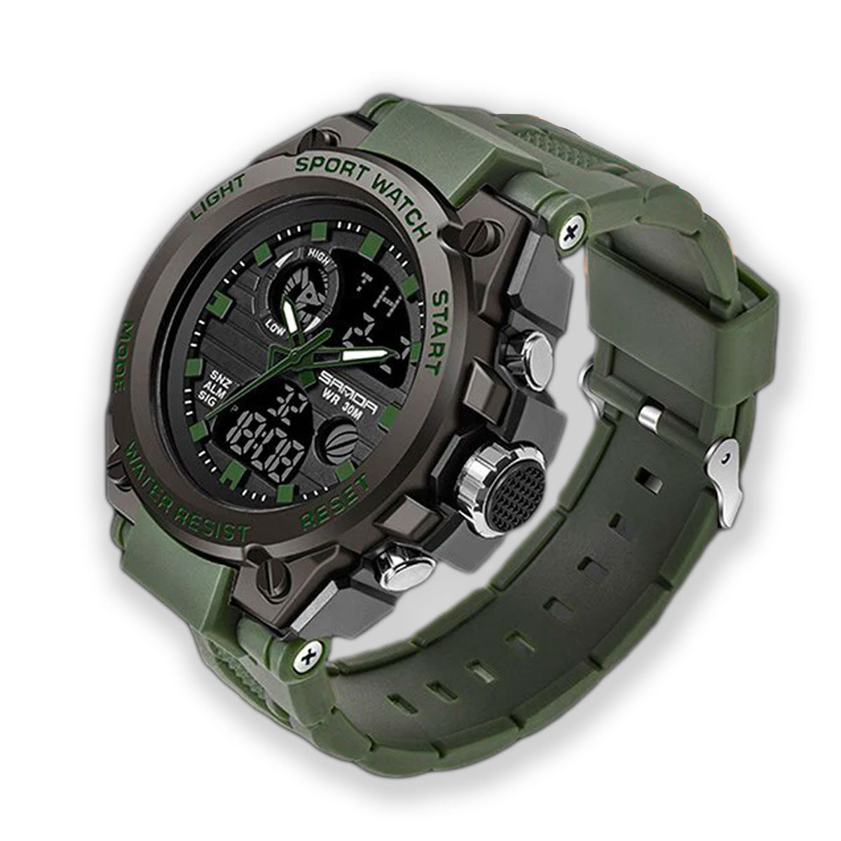 Få ut det mesta av din friluftslivsstil med den här klockan i militärstil. Med sin klassiska design och robusta vattentäta konstruktion är den här militärinspirerade klockan perfekt för den stiliga killen som vill ha en klocka som klarar vardagens hårda krav.