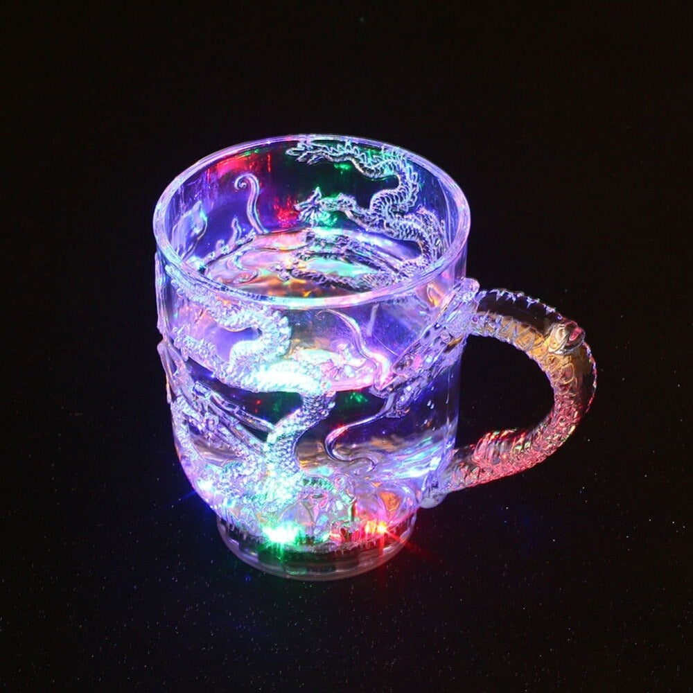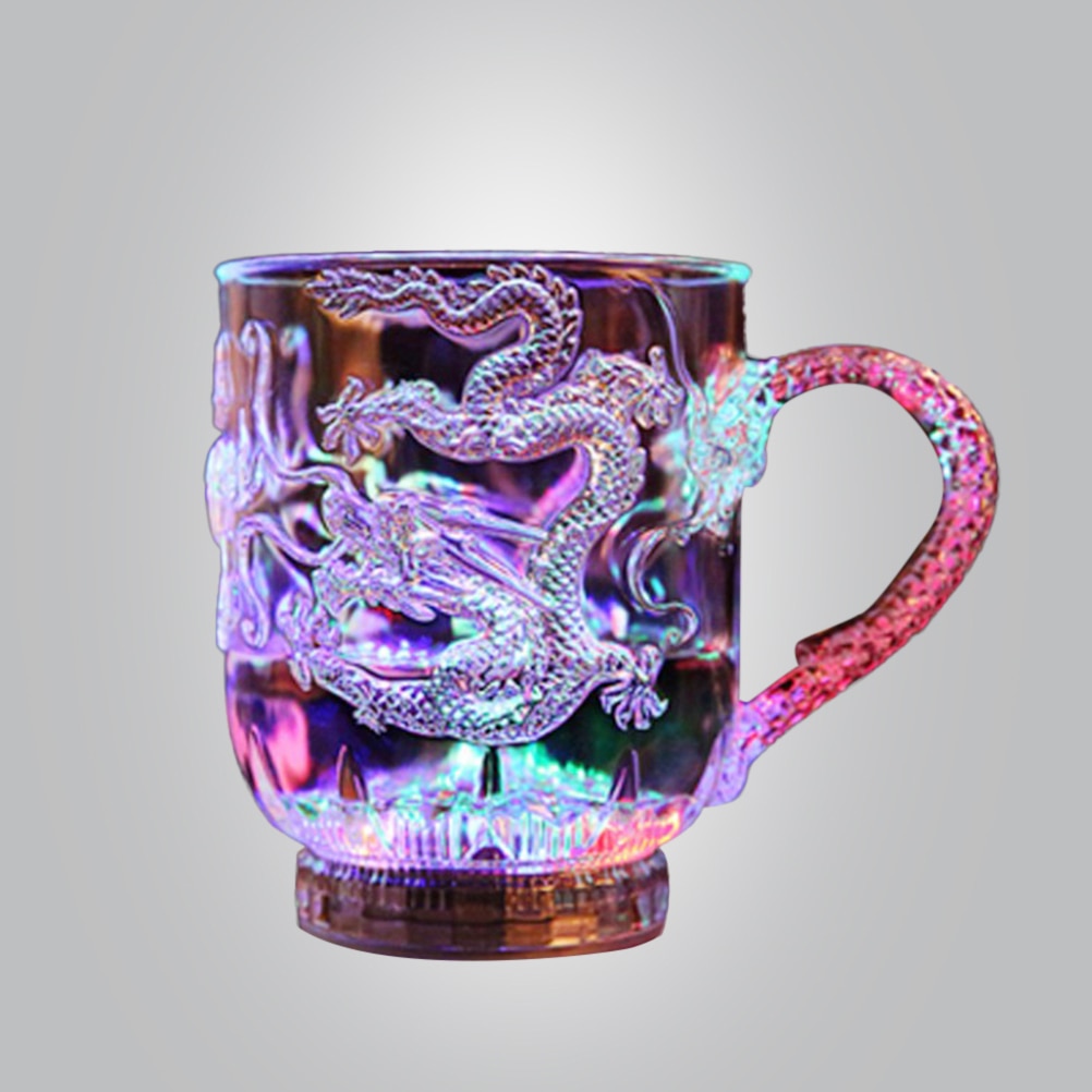 Är du trött på att använda gamla tråkiga plastmuggar på festen? Byt till Color Changing Dragon Cup i stället. Ett pryltillbehör som lyser upp när vatten, eller någon annan vätska, hälls i den. Detta mästerverk från den tekniska tidsåldern visar sin inre magi genom att automatiskt reagera på sin omgivning när den dränks med din favoritdryck. Ett utmärkt sätt att förvåna dina vänner och visa upp sig vid sociala evenemang.