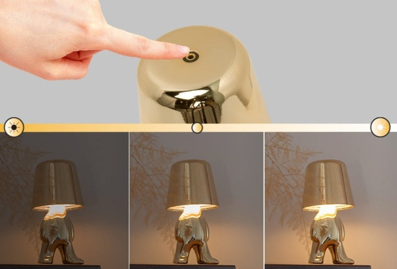 TOUCH CONTROL: 3 LEVELS OF DIMMING: Thinker Golden Man bordslampa erbjuder bekväm touch control med 3 nivåer av ljusstyrka. Med hjälp av den högkvalitativa sensorn på lampans ovansida kan du enkelt skapa olika ljusatmosfärer genom att justera ljusstyrkan efter dina behov.