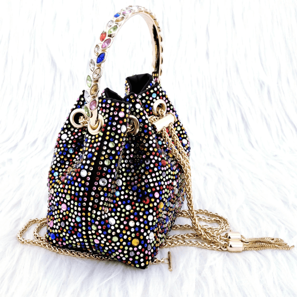 ELEGANTA STRASSPRYDNADER: Höj din stil med skimrande strasshögklackar. Dessa klackar och den medföljande handväskan är dekorerade med bländande strassstenar, vilket ger en touch av glamour och elegans till din look. Strassstenarna fångar ljuset och utstrålar sofistikering, vilket får dig att sticka ut vid alla tillfällen.