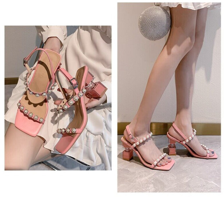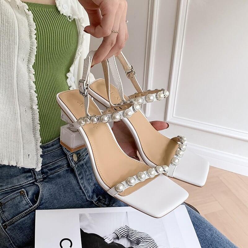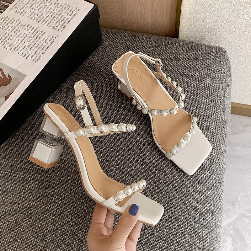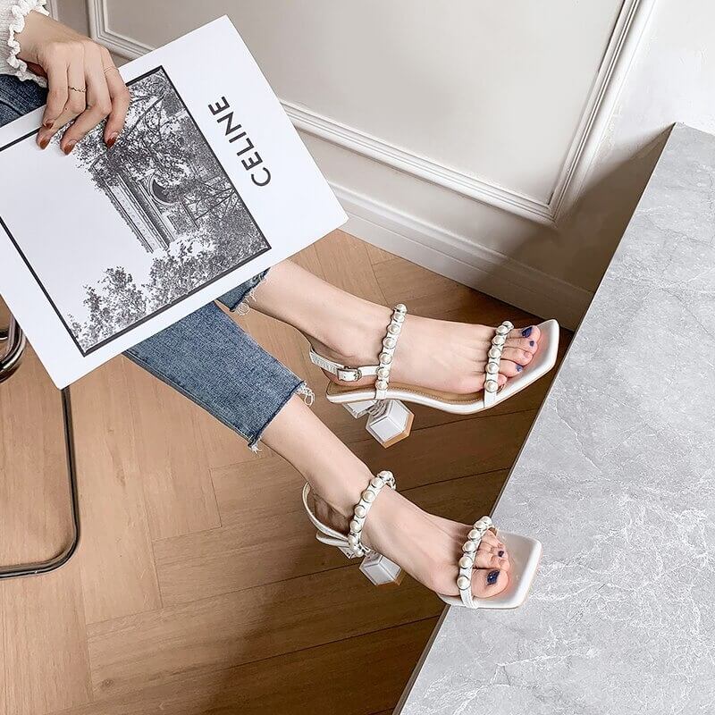 ELEGANT DESIGN: De har ett vackert pärlspänne, en ca 7,5 cm hög klack och remmar som omsluter vristen för att lägga till ett extra stilelement till din vardagliga monotona klädsel.