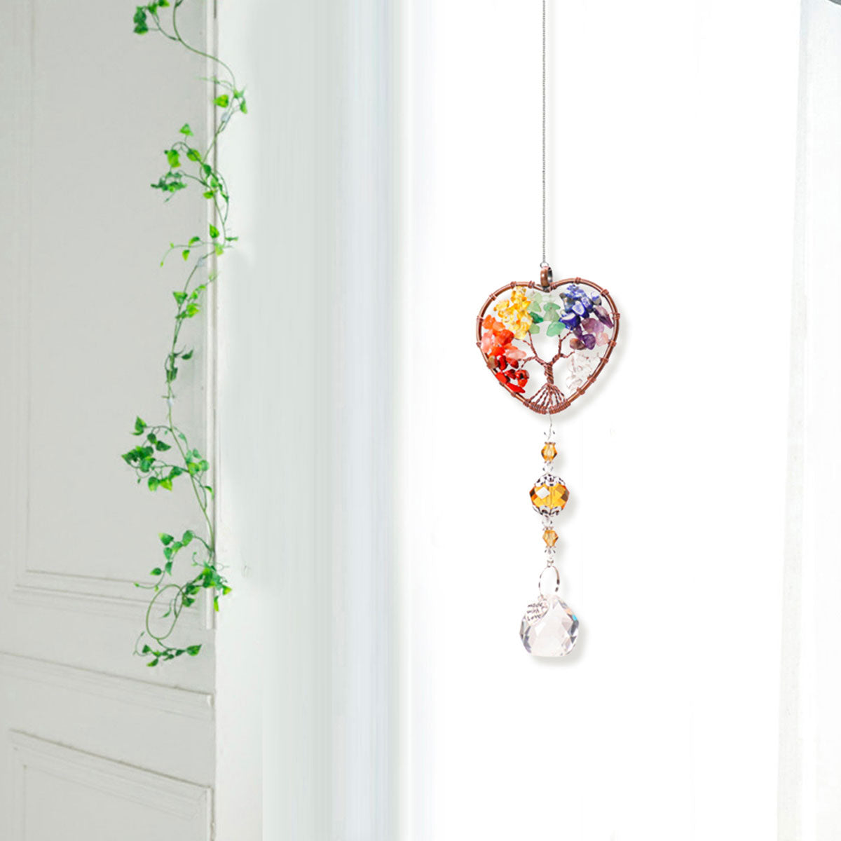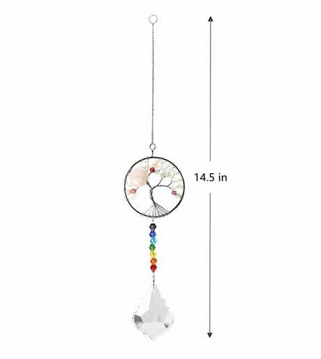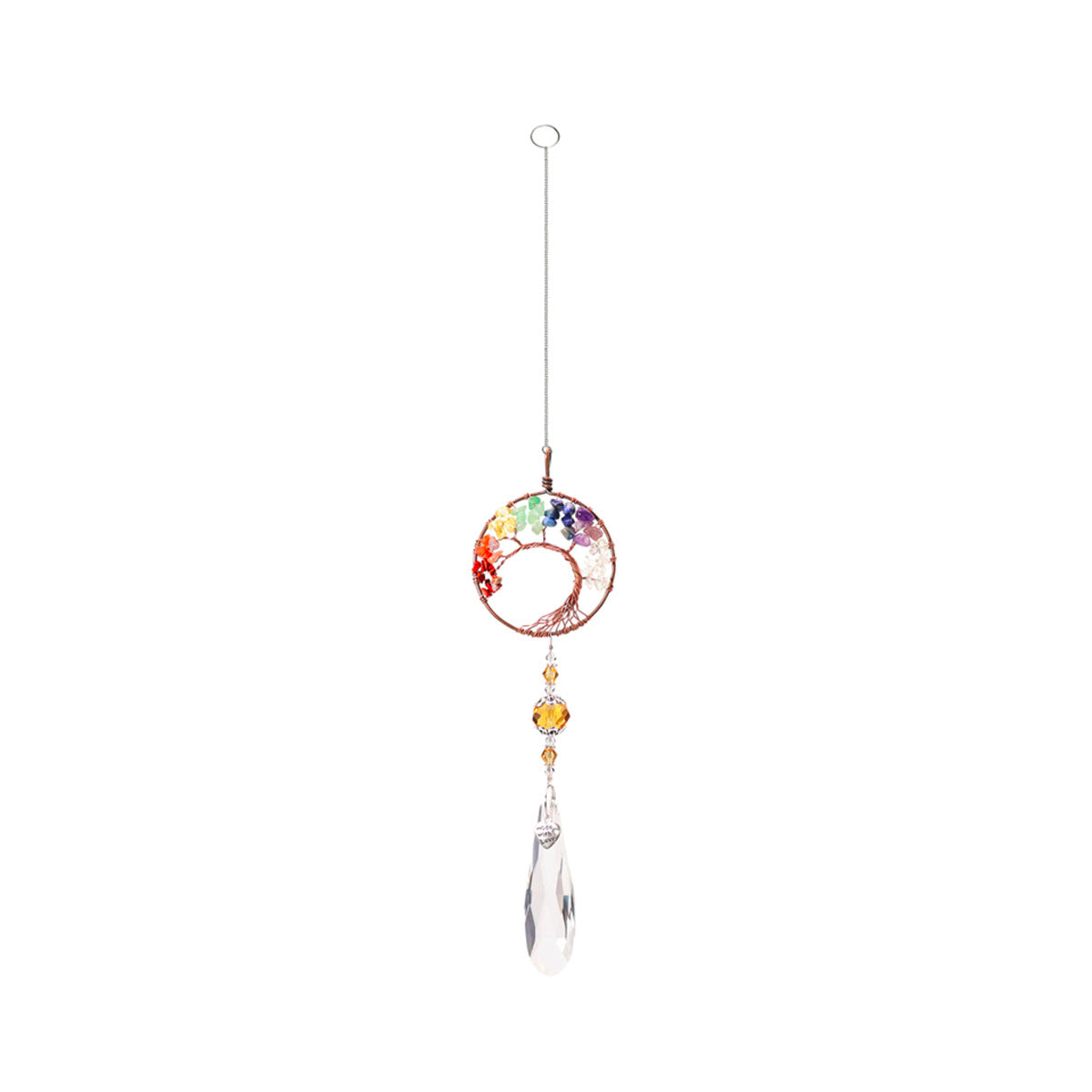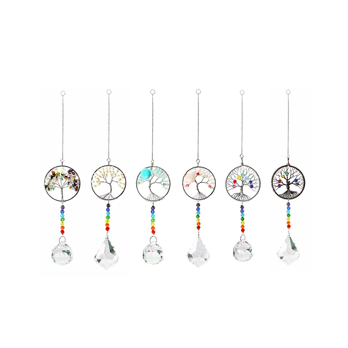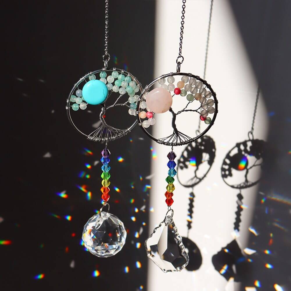 LIVETS TRÄD OCH KRISTALLER: Gör ditt fönster unikt och vackert med denna solfångare med livets träd. Den här prydnaden består av kristallkulor som kan ge en vacker reflektion och regnbåge i solljus.