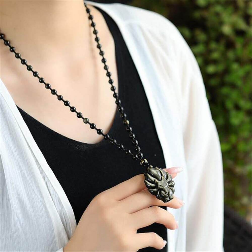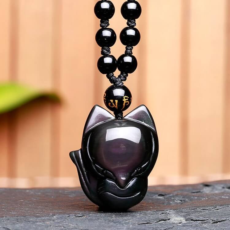 Obsidian Fox Spirit Amulet är ett vackert och symboliskt smycke. Det här smycket är hugget av ren obsidian och är en kraftfull jordsten som skyddar sina ägare och ger bäraren den styrka som behövs för att stå på sin övertygelse mot alla fiender.