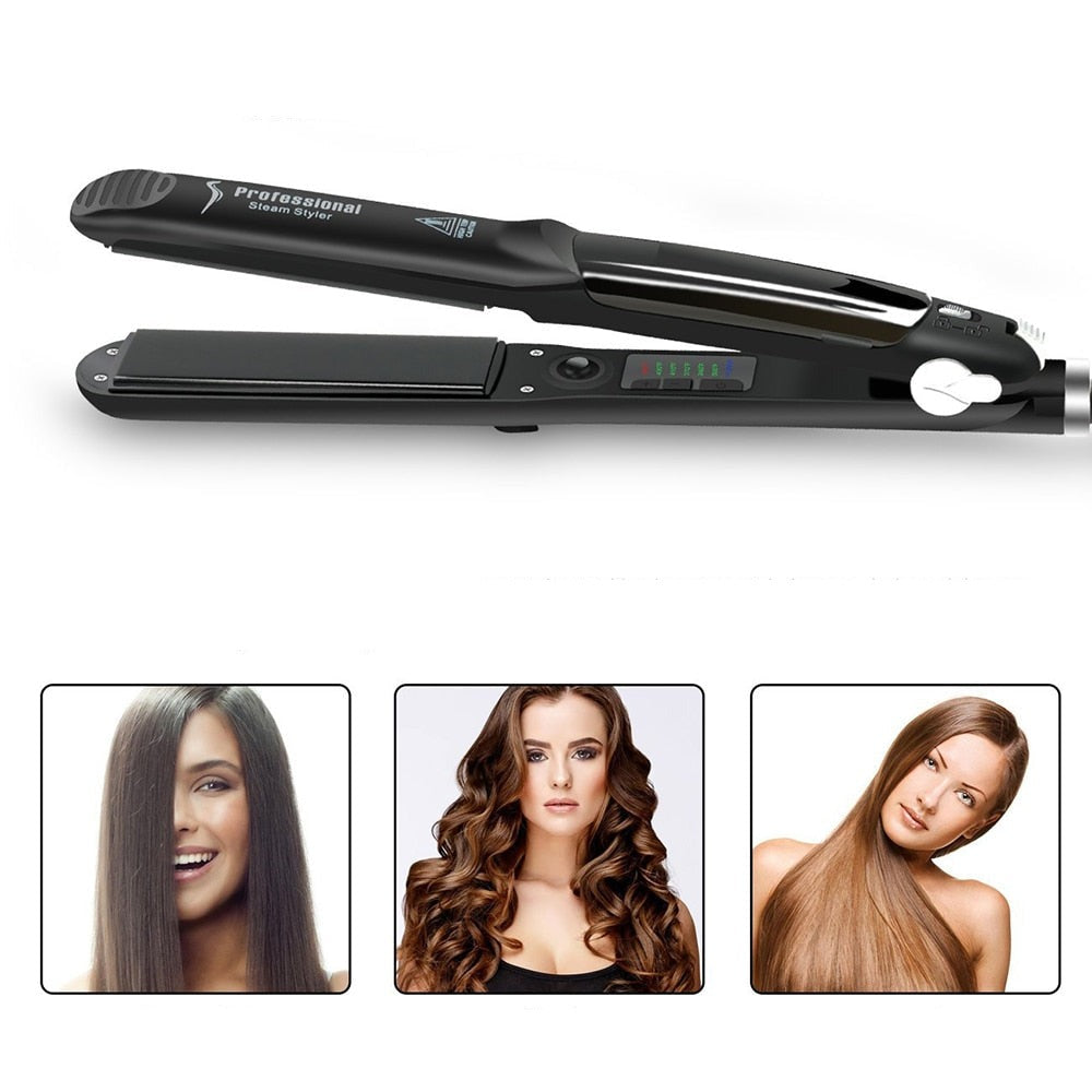 Denna innovativa enhet gör ditt hår slätt, silkeslent och smidigt inom några minuter. Till skillnad från traditionella plattänger applicerar CERAMIC HAIR STEAM STRAIGHTENER mild ånga på håret när det plattas, vilket gör det betydligt mjukare och skyddar det från brännskador och värmeskador, samtidigt som värmen hålls på precis rätt ställe. Få salongskvalitativa resultat på nolltid!