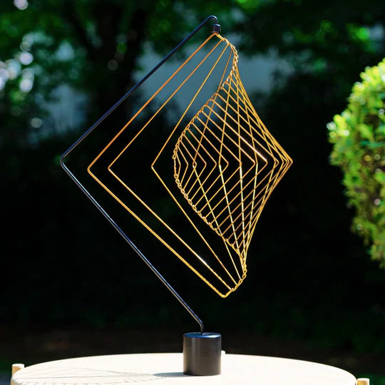 • TÅLIG DESIGN: Square Wave är tillverkad av stål som behandlats för att kunna användas både inomhus och utomhus. Du kan hänga den i din trädgård eller uteplats. Beundra när den vecklar ut sig och virvlar i sitt stående läge eller häng den från taket för att göra den till ett mittpunkt i ditt hus.