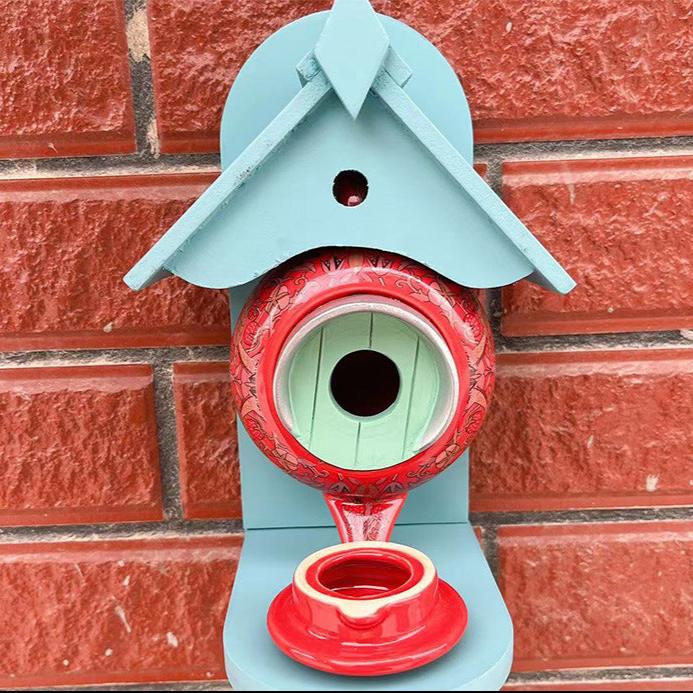 Upplev glädjen av naturen på nära håll med vårt Fågelmatningshus i Tekannestil! Denna skojiga fågelholksmatning tar formen av en mysig tekanna och ger en nypa nymodighet till din trädgårdsdekoration. Som en lockande tillflyktsort för fåglar är det mer än bara en matningsplats – det är ett underbart hem där vingade besökare kan vila och njuta av en måltid.