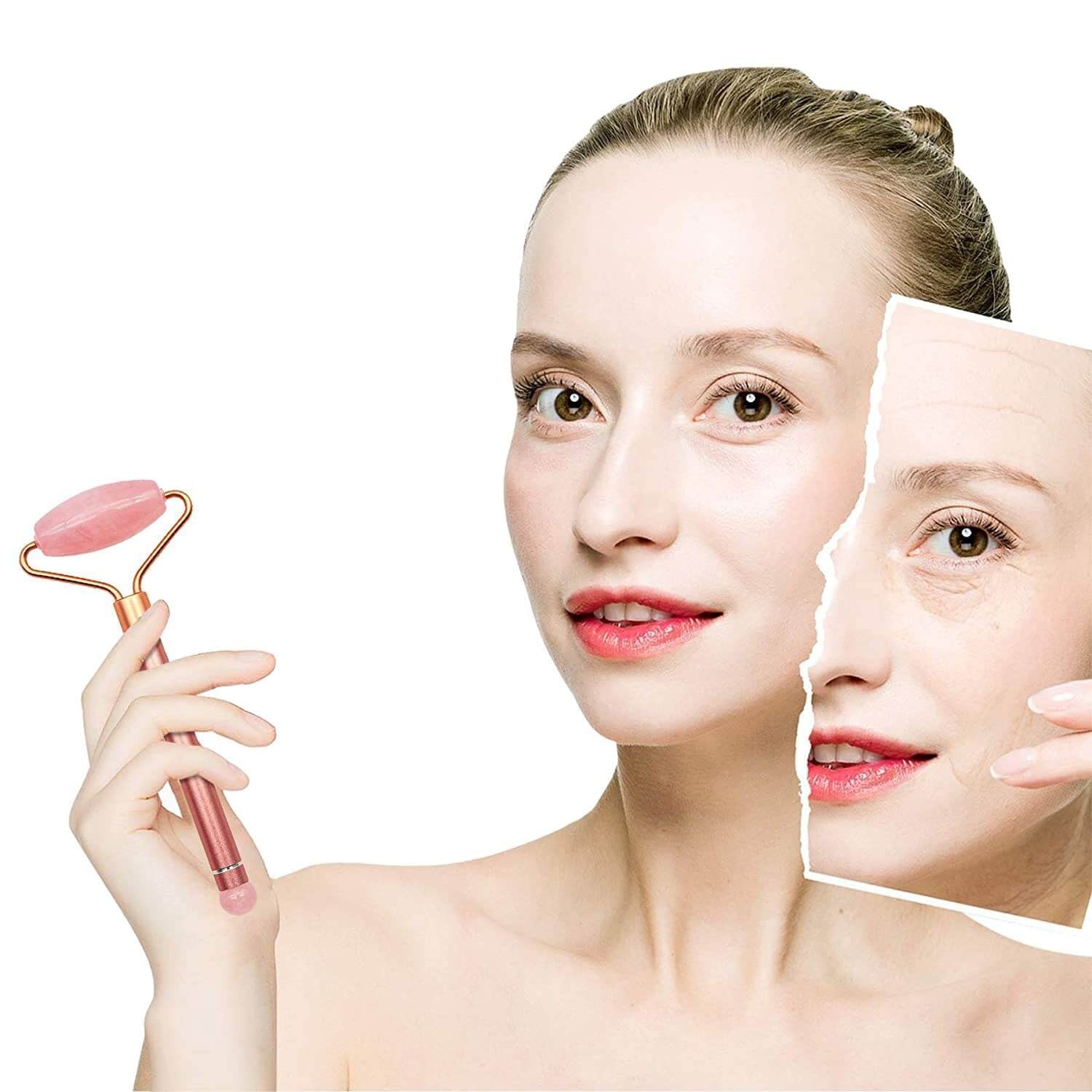 UPPTÄCK DIN NATURLIGA LYSTER MED VÅRT 5 I 1-KIT MED ROSENKVARTSROLLER