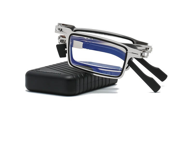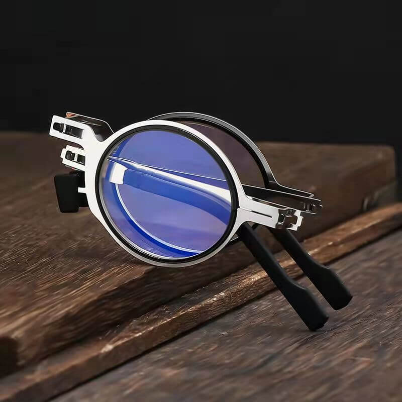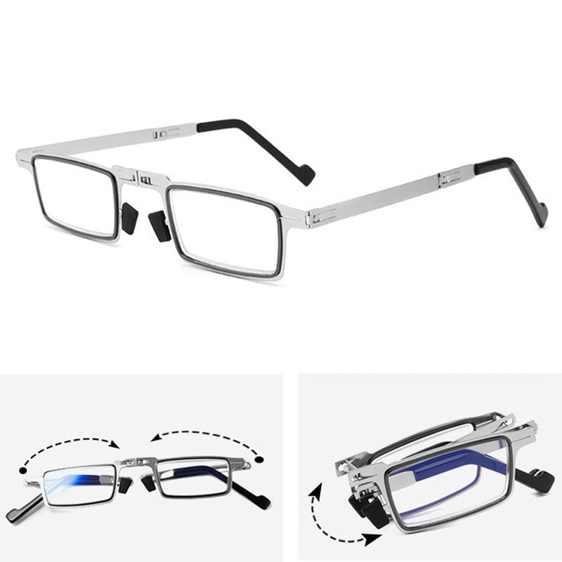• HOPFÄLLBAR OCH ULTRALÄTT: Glasögonen är tillverkade av en ram i rostfritt stål och en lins i polykarbonat, en vikbar brygga och teleskopiska tempel för enkel vikning och kompakt förvaring. Låter dig ta med dig till var som helst.
