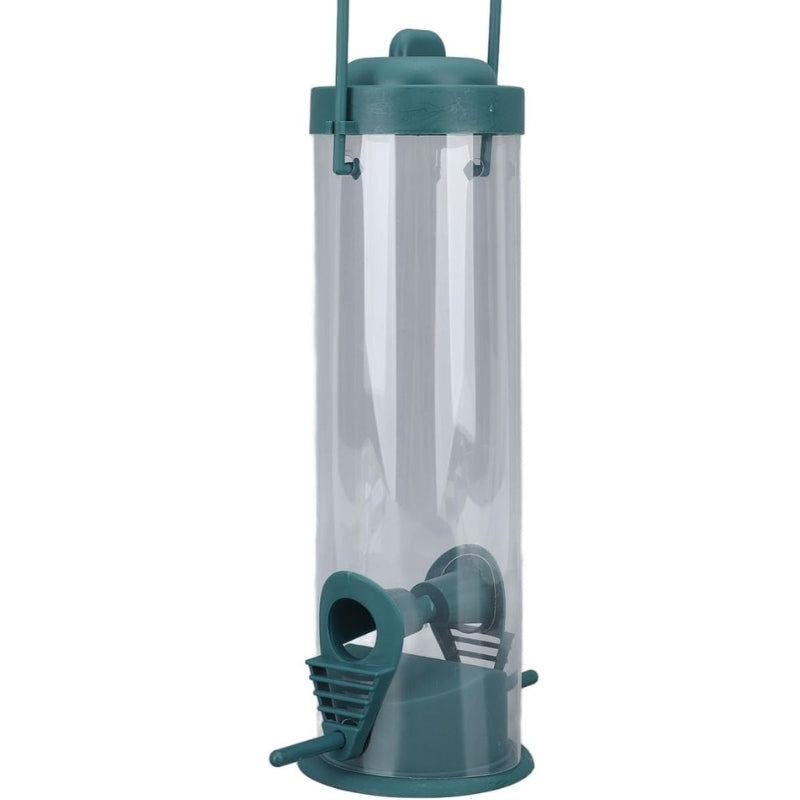 HÅLLBAR MATARE: Tillverkad av premiumplastmaterial är denna fågelmatare motståndskraftig mot olika väderförhållanden, vilket säkerställer lång hållbarhet och konsekvent funktionalitet.