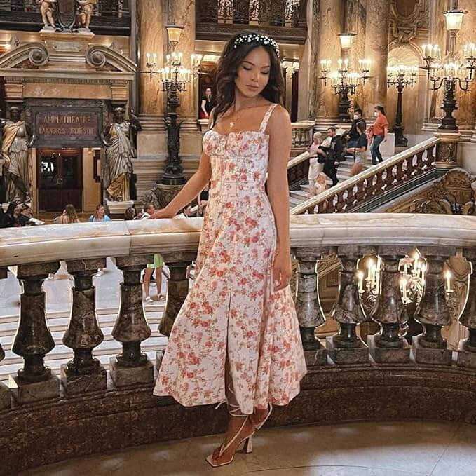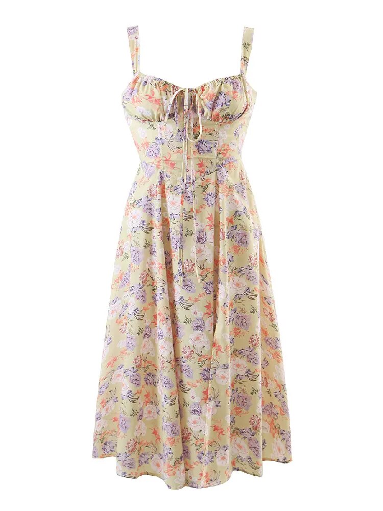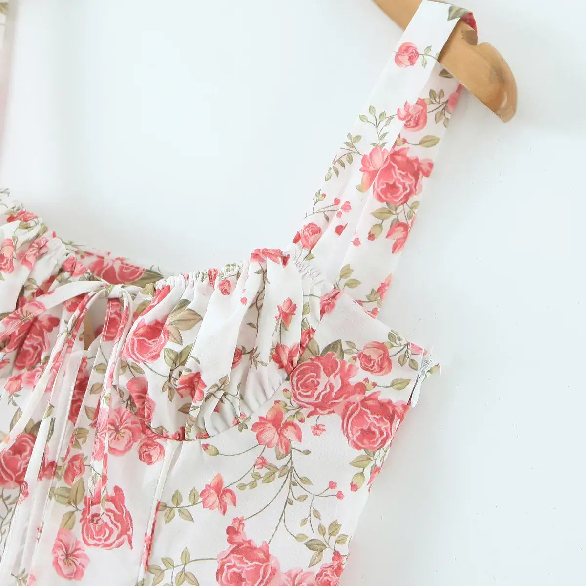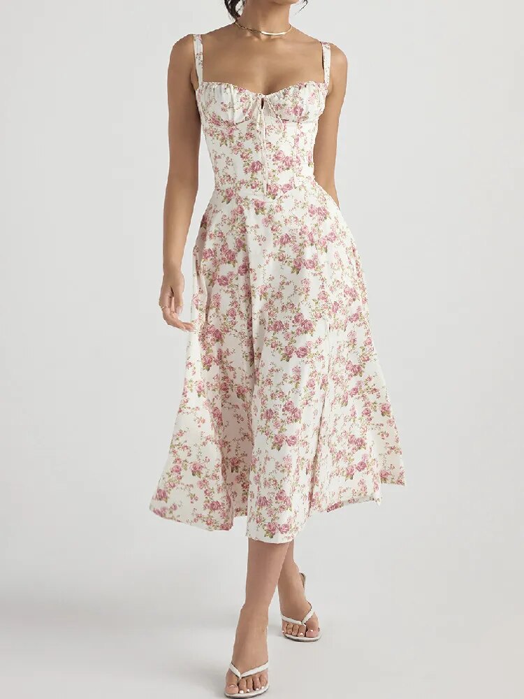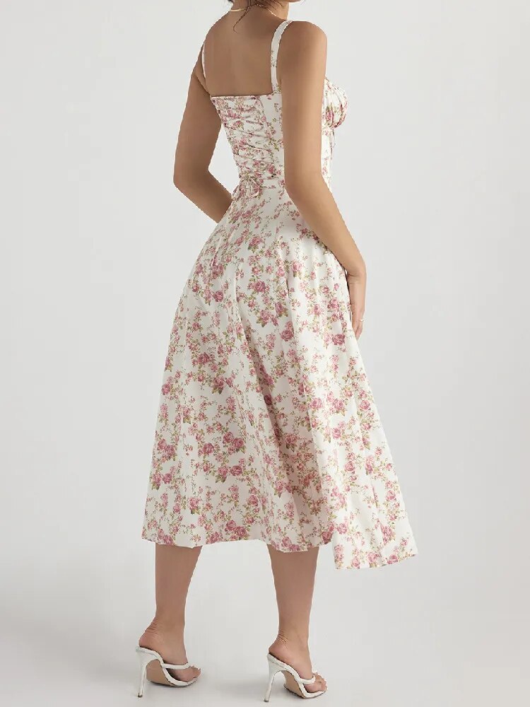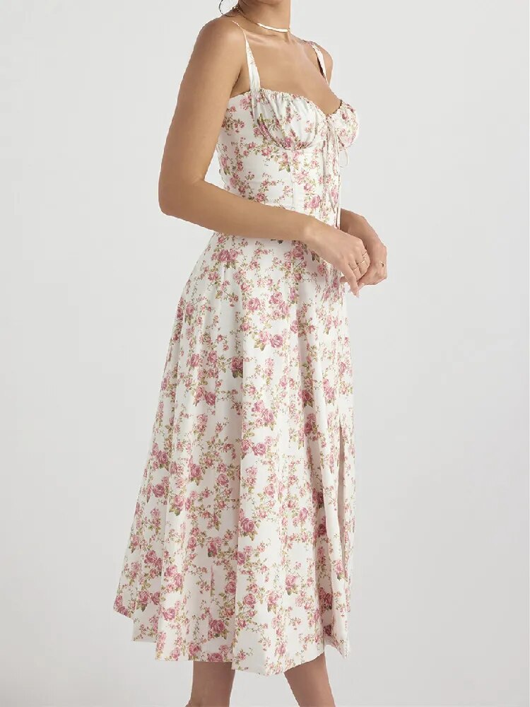 Omfamna elegans och självförtroende med vår blommiga bustier-midjformande solklänning - ditt ultimata sommarmåste!