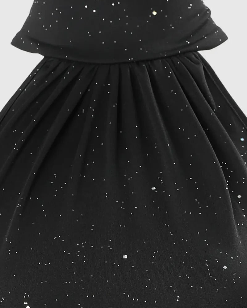 GLITTERY: Klänningen är prydd med glitter, vilket kan ge glitter och glans till din look och få dig att sticka ut på alla fester och evenemang.