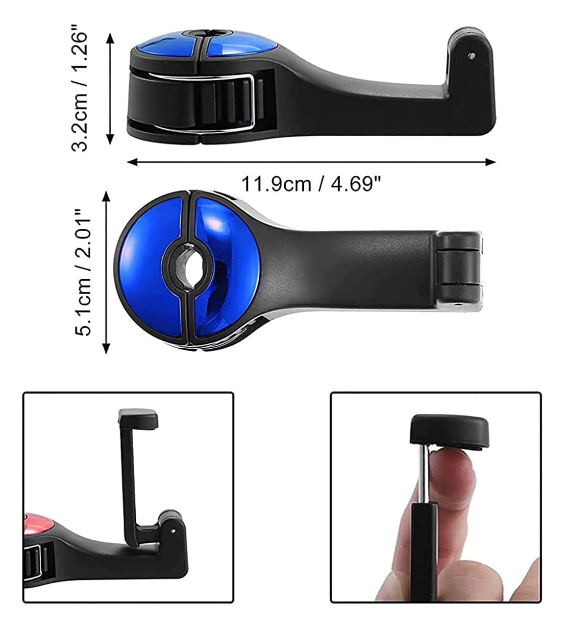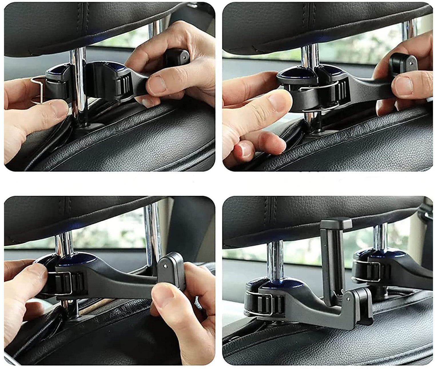 Bilens nackstödshängare har en snygg och modern design och är tillverkad av högkvalitativt ABS och silikongummi, vilket gör den superhållbar och kan hålla upp till 22 pund utan att spricka. Den unika låsdesignen och den mjuka tandade kroken säkerställer att dina föremål stannar säkert på plats.