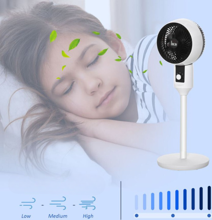 Den runda basen gör den stadig och en vridbrytare gör den enkel att använda. Med 3D-cirkulationsluft och vidvinkellufttillförsel är inomhusluften helt cirkulerad för att hålla området svalt och fräscht. Den har ett bekvämt bärhandtag så att du kan placera den var som helst i huset.