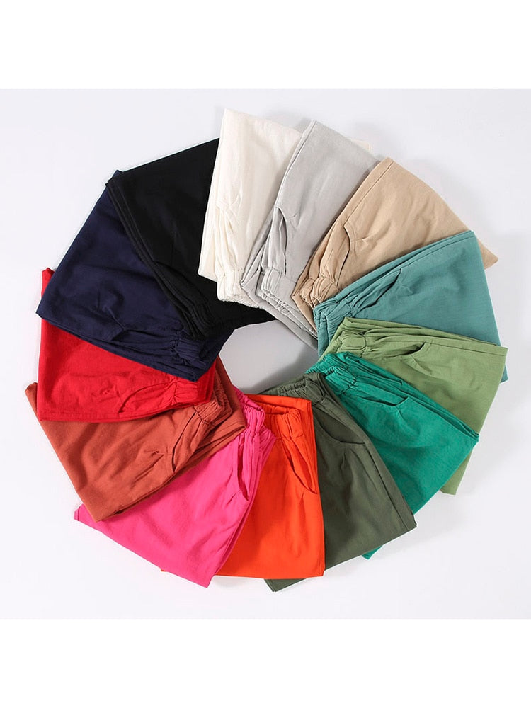 Tillverkade av lätt bomullslin, är dessa byxor utformade för att hålla dig bekväm och sval, oavsett om du utför dina dagliga aktiviteter eller deltar i speciella tillfällen. Säg adjö till obehag och säg hej till lättsam stil med damers byxor med elastisk midja. Höj din sommargarderob med dessa luftiga och eleganta byxor som säkerligen kommer att bli ditt förstahandsval för soliga säsonger.