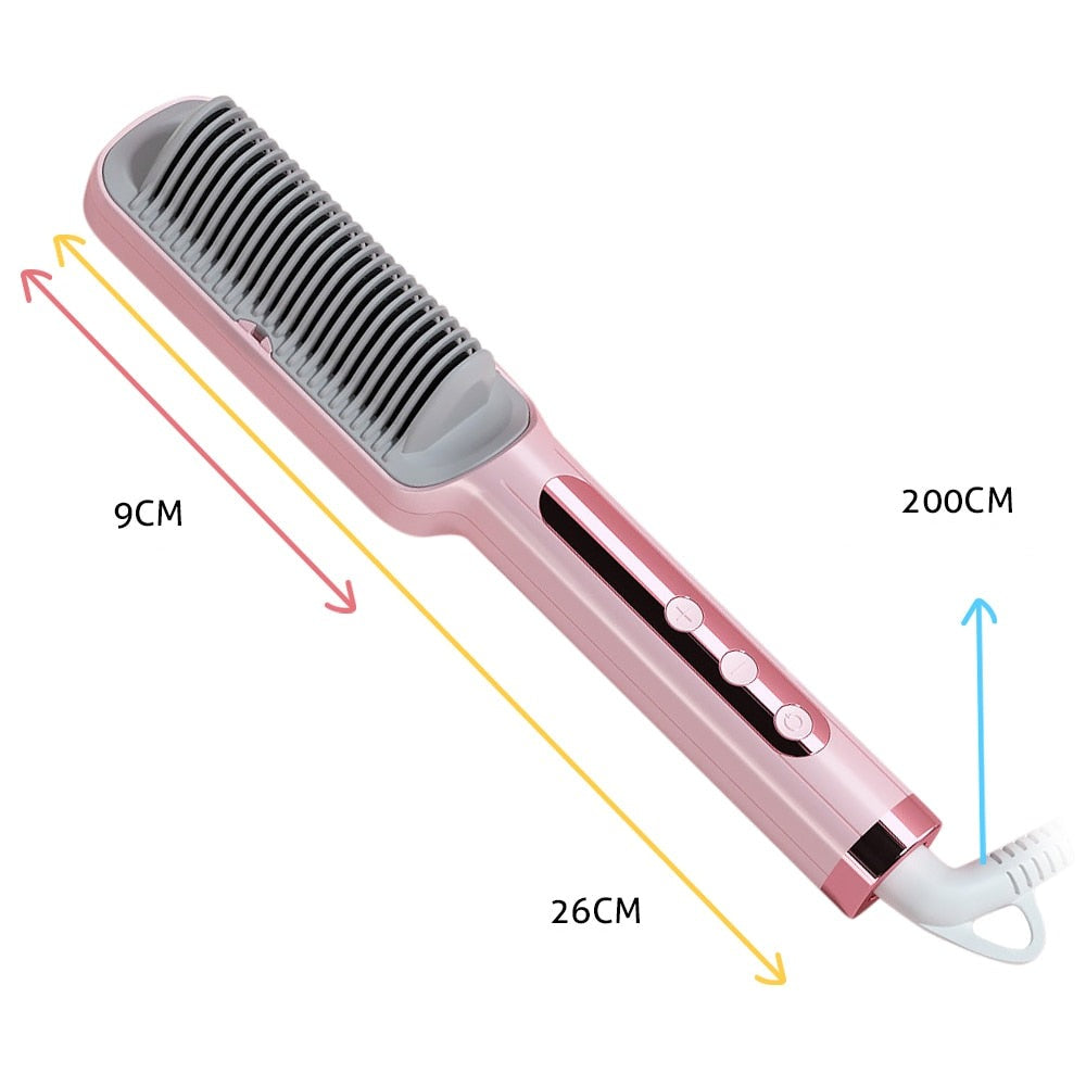 VERSATILE 3 IN 1 DESIGN: Allt du behöver för ett vackert och friskt hår, en kam för att reda ut håret, en hårborste, en plattång, en skäggplattång och en hårmassageapparat med anjoner, allt i ett! Utformad med en 360-graders roterande baskabel som gör att du kan styla håret från alla vinklar och få det mest professionella resultatet; en Smart enkel one-touch-knapp och avancerad flytande kristalldisplay gör att du enkelt kan styra och övervaka dess temperatur