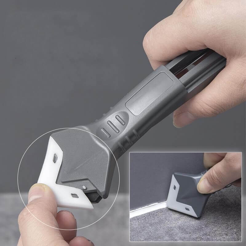 MÅNGSIDIGT 3-I-1-VERKTYG: Höj dina gör-det-själv-projekt med denna Vinkel Lim Skovel Skrapa, som har kombinerade funktioner av en skrapa i rostfritt stål, en spackelspade i silikon och en skrapa i plast och rostfritt stål. Dess mångsidighet täcker olika behov av tätningsarbeten.