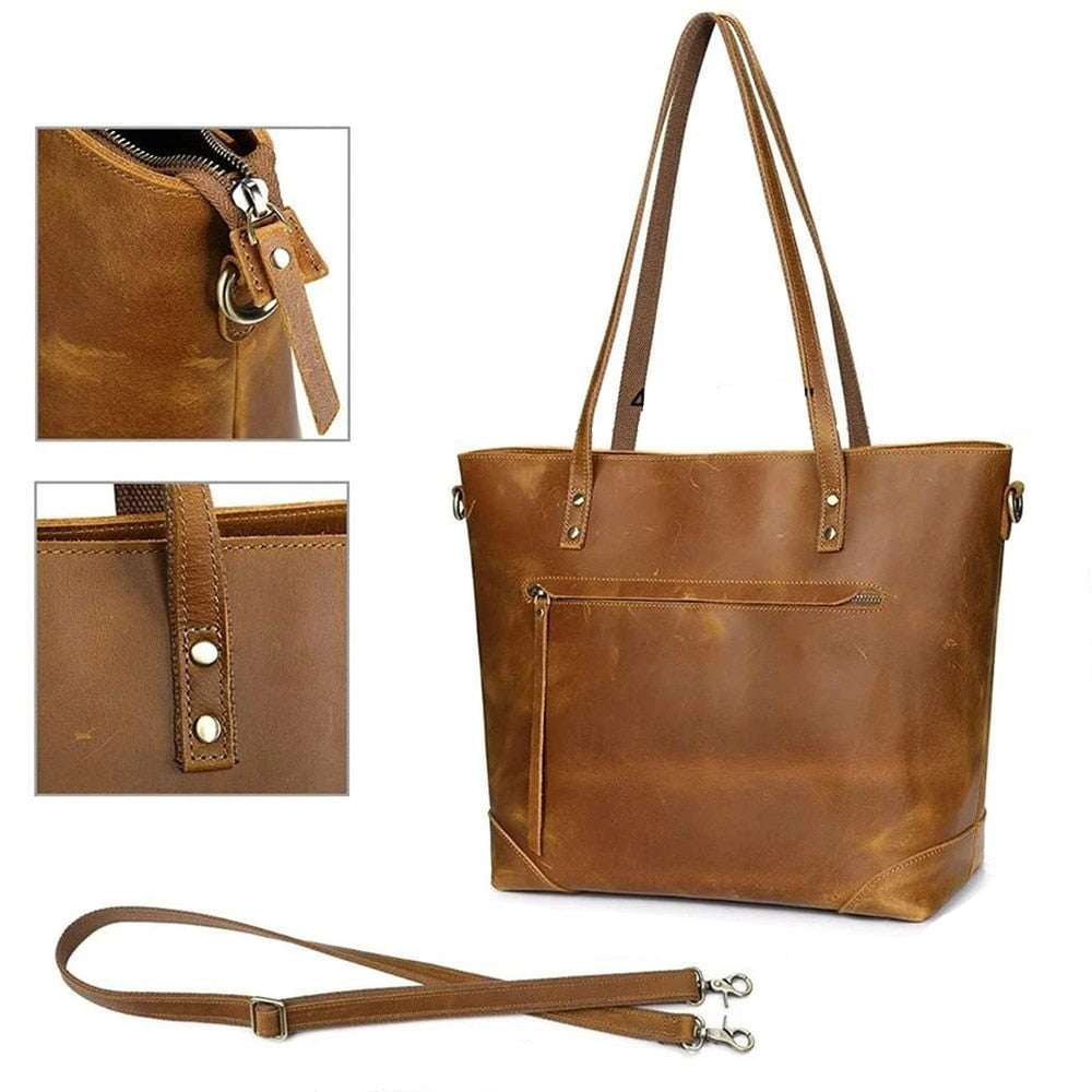 • DESIGN: Vintage Leather Tote Bag har en klassisk och tidlös design med en touch av modern stil, och kan vara din vardagsväska som kan kombineras med alla dina kläder, från avslappnad till formell.